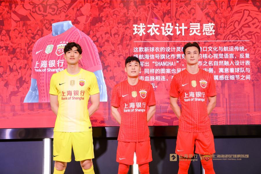 活动上,上海海港俱乐部球员代表武磊、颜骏凌和安永佳身着2026赛季全新主场战袍登台,展示了印有“上海银行”标识的新赛季球衣。